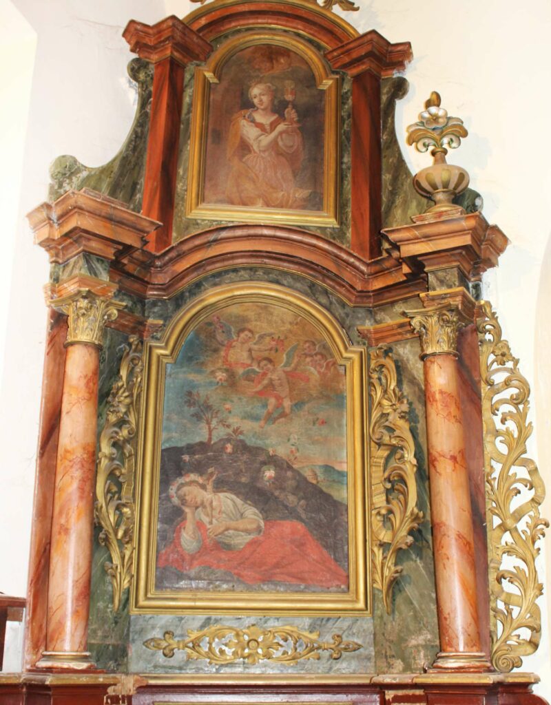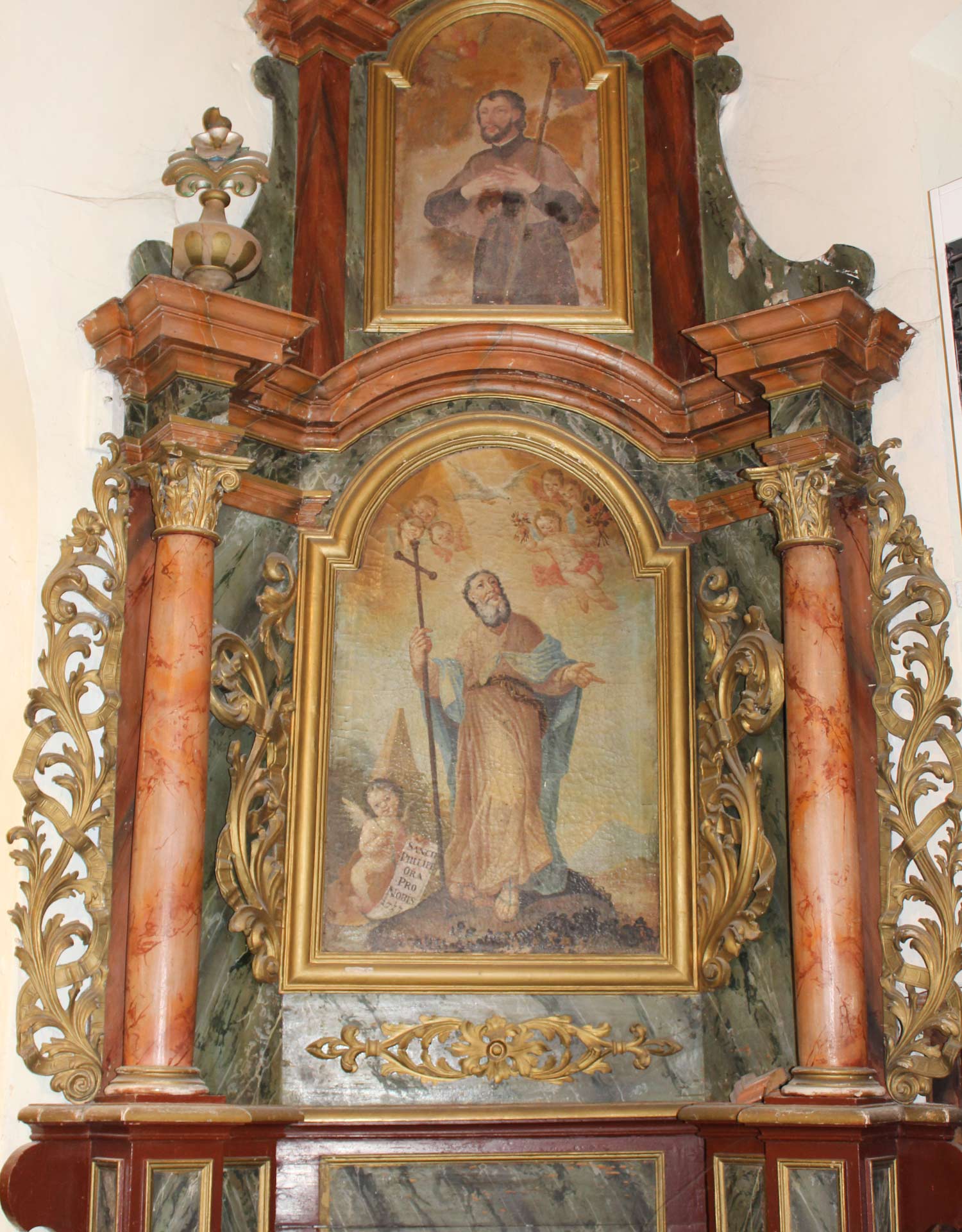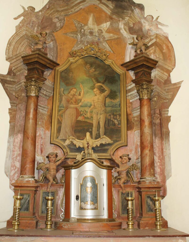 Glavni oltar posvećen je svetom Sebastijanu, vojniku. Na slici je prikazan sv. Sebastijan izboden strelicama, a kraj njega je anđeo. Iznad je osmerokraki zvjezdasti amblem u kojem su prikazana tri kralja.